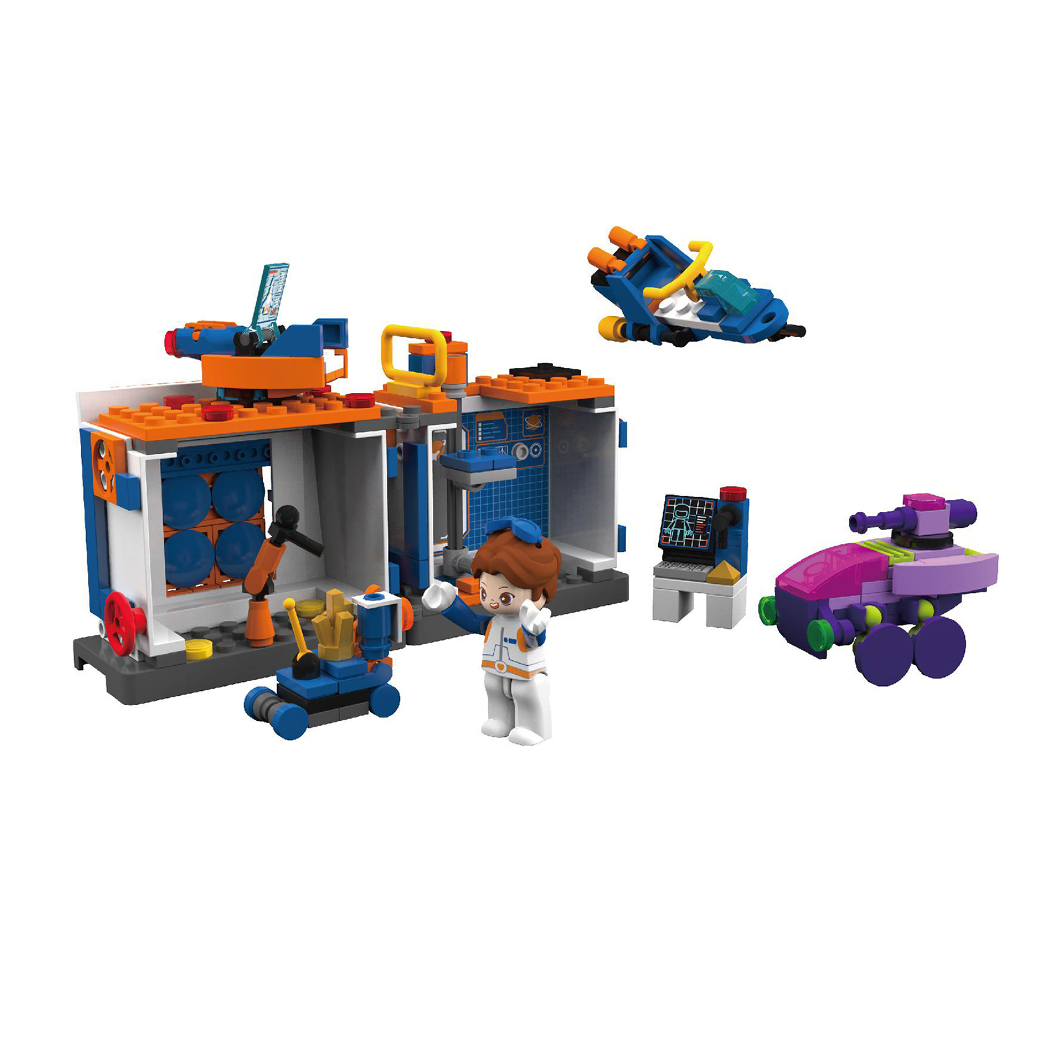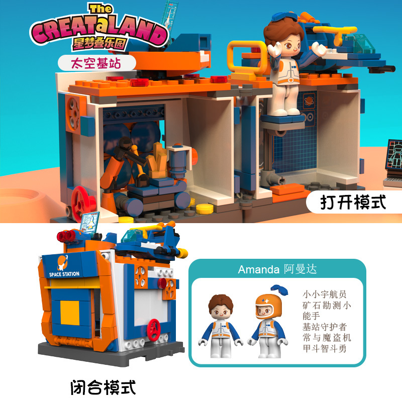 太空是遙不可及的,充滿想像的。浩瀚的太空,空間的科學(xué)知識(shí),如何能讓小朋友能感興趣和輕松理解呢?太空基站,通過小小的積木,連接起孩子通往太空的橋梁。在太空基站里,有宇航員,有進(jìn)行科研所需要的多種設(shè)備,操控臺(tái)顯示著宇航員的身體指標(biāo),運(yùn)輸車運(yùn)輸著剛采集到的礦石,酷炫的太空武器時(shí)刻警戒,守衛(wèi)著這里的安全。孩子們將在拼建的過程中了解到,太空基站是做什么用的,宇航員在太空中是怎樣工作的,滿足孩子對(duì)太空探索的需求。